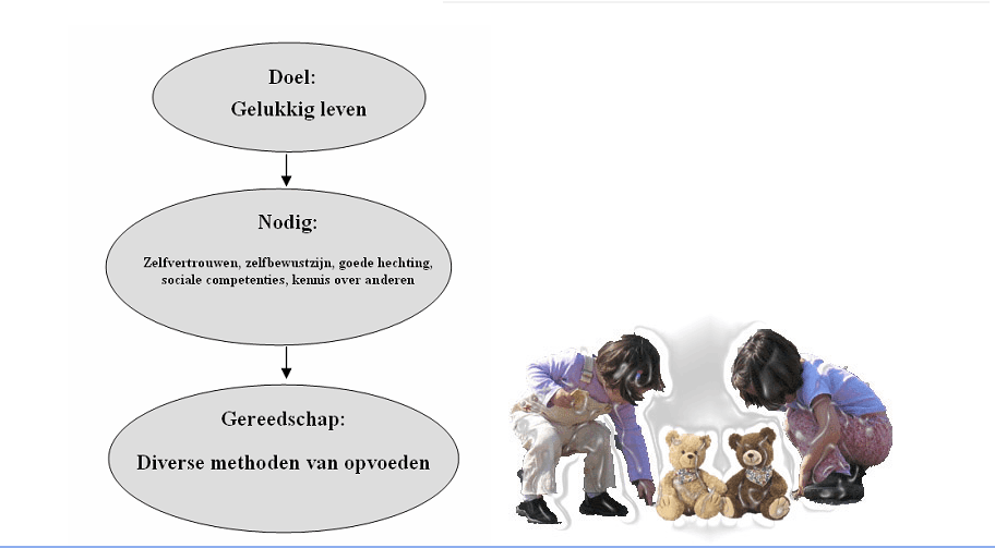 Door het gebruik van de diverse opvoedingsmethoden kan men een kind zelfstandigheid, zelfbewustzijn en zelfrespect bij leren brengen wat nodig is om het kind gelukkig te laten worden in het latere leven.