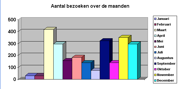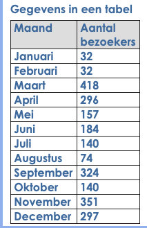 Als je de gegevens in een grafiek plaatst krijg je weer een ander beeld van wat je wilt vertellen. Het overzicht van de kolommen geven een duidelijke kijk op het verschil dat er per maand is in het aantal bezoekers die er geweest zijn in het tienercentrum.