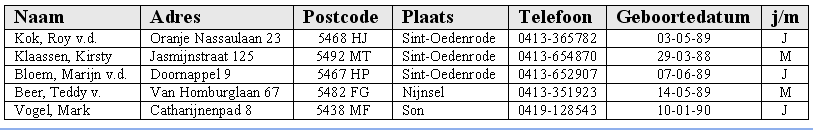 In alle tabellen in dit hoofdstuk zijn de namen en adressen van de tieners veranderd i.v.m. privacy.